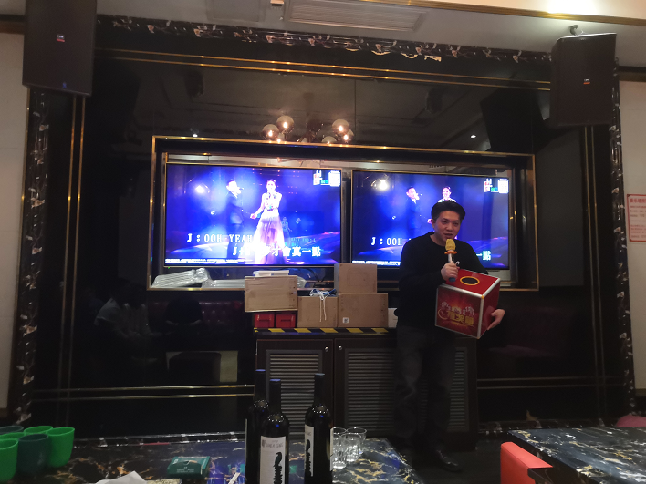 在K歌环节中还穿插了抽奖环节,随着三等奖、二等奖、一等奖的抽取,不断掀起年会的高潮。年会不仅给大家带来了欢声笑语,同时也让同事之间彼此的心更加贴近。公司领导与员工亲切互动、激动人心的抽奖活动,让歌声、掌声、欢呼声一直在会场上荡漾。整场联欢会高潮迭起,呈现出佛山小葱公司这个大家庭的欢乐和谐。