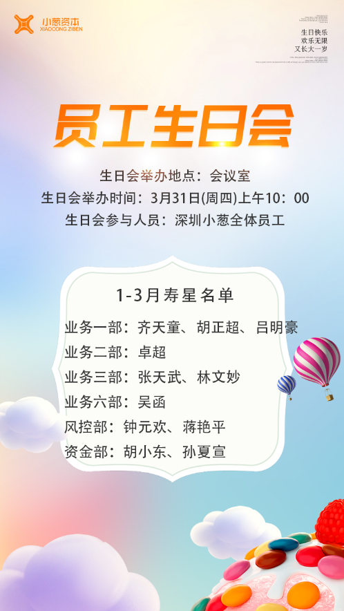 每个生日都有祝福,每句祝福都有礼物,每份礼物都有惊喜,每段惊喜都是人生,每种人生都有记忆。今日我们拥有同样的记忆-深圳小葱2022年第一季度生日会!