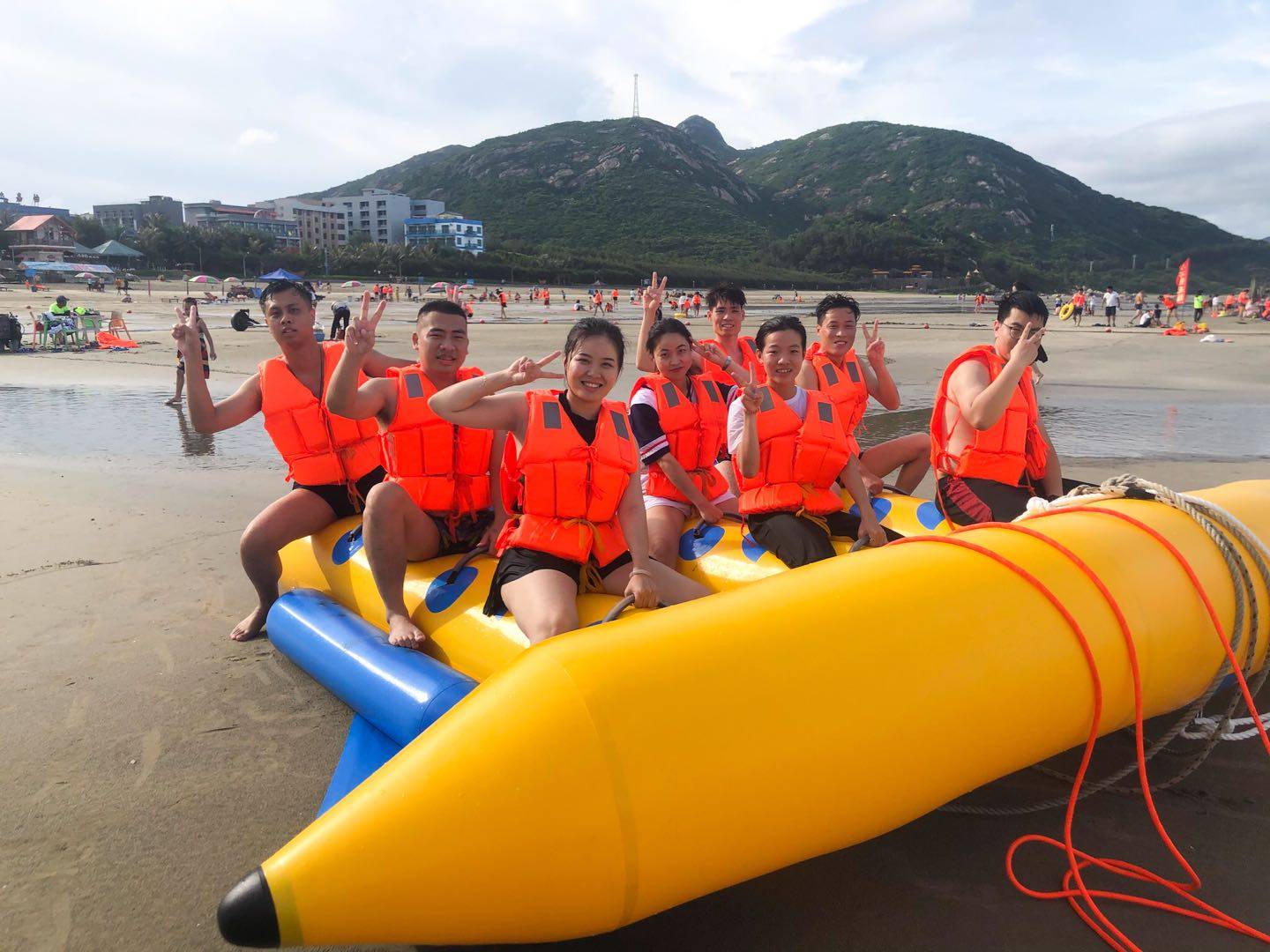 紧张刺激的香蕉船在海平面上“起飞”