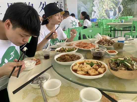 安排了很多菜还有饮料,菜多的我们都吃的肚子鼓鼓的;