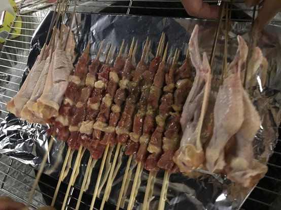 椰树下、沙滩上、海浪声、烧烤盛会,各小组的小伙伴和烧烤大师们开始各显神通啦,羊肉串、鸡翅、鸡腿、热狗~~~~袅袅青烟,烧烤的香味四散,我们的烧烤晚餐开始啦……