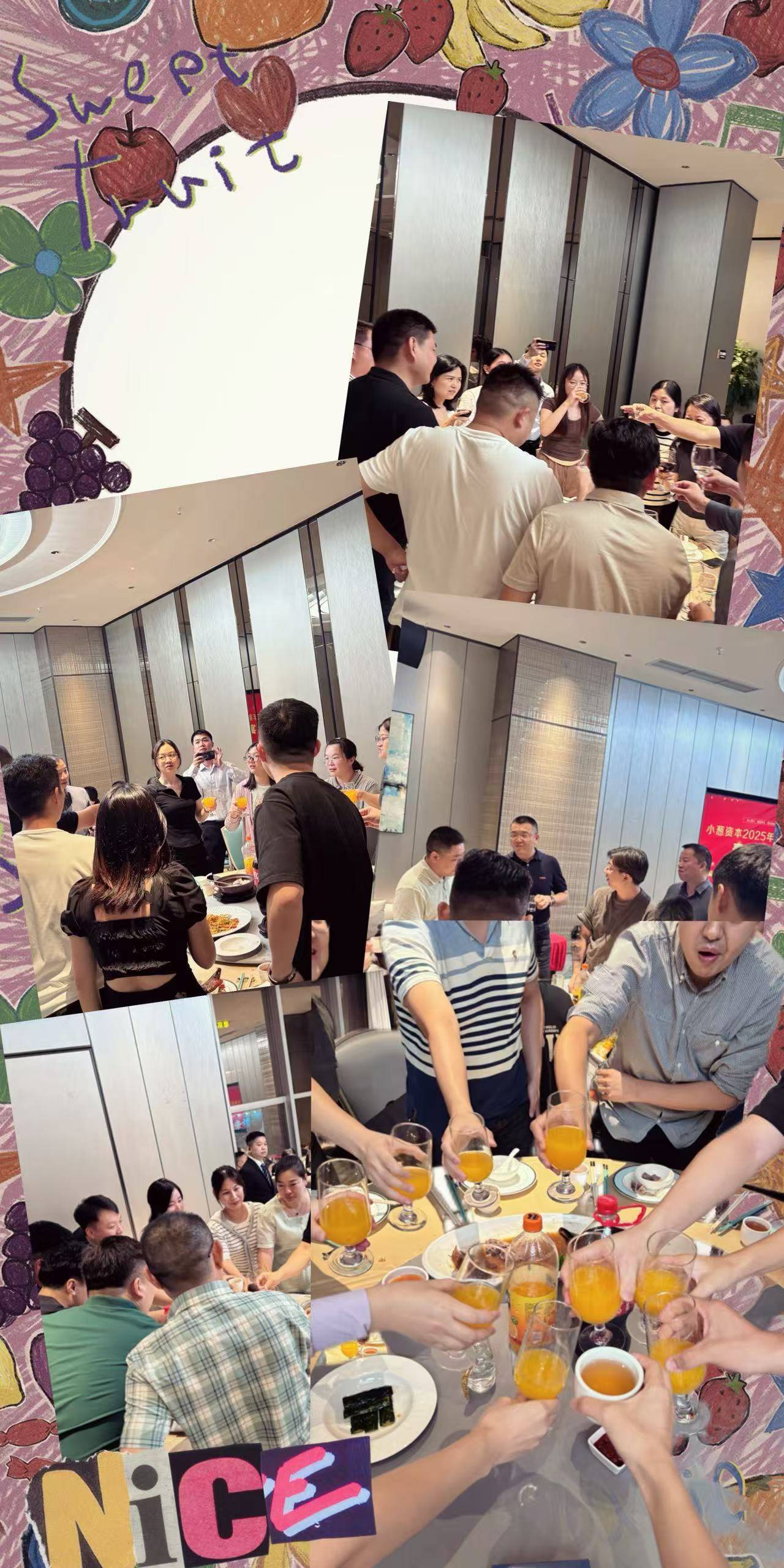 大家举杯同庆,开杯畅饮,笑脸盈盈的互相分享在工作中遇到的趣事
