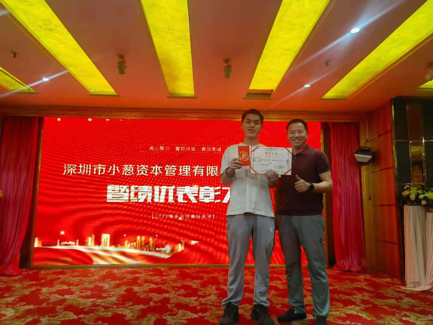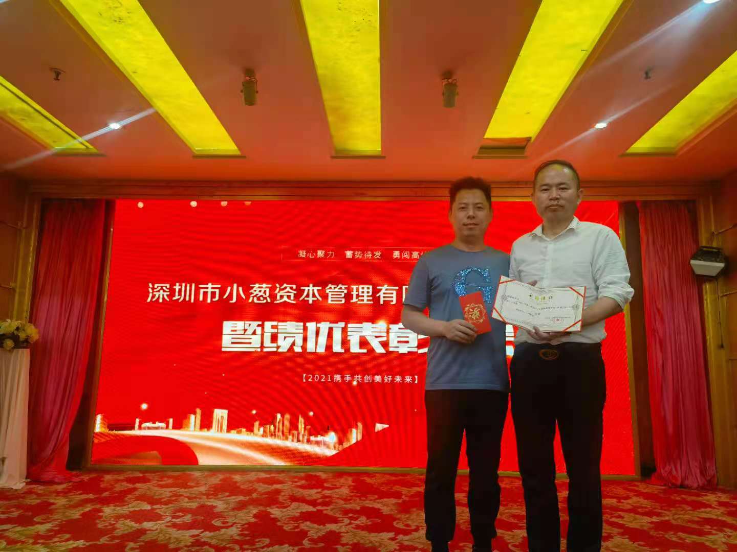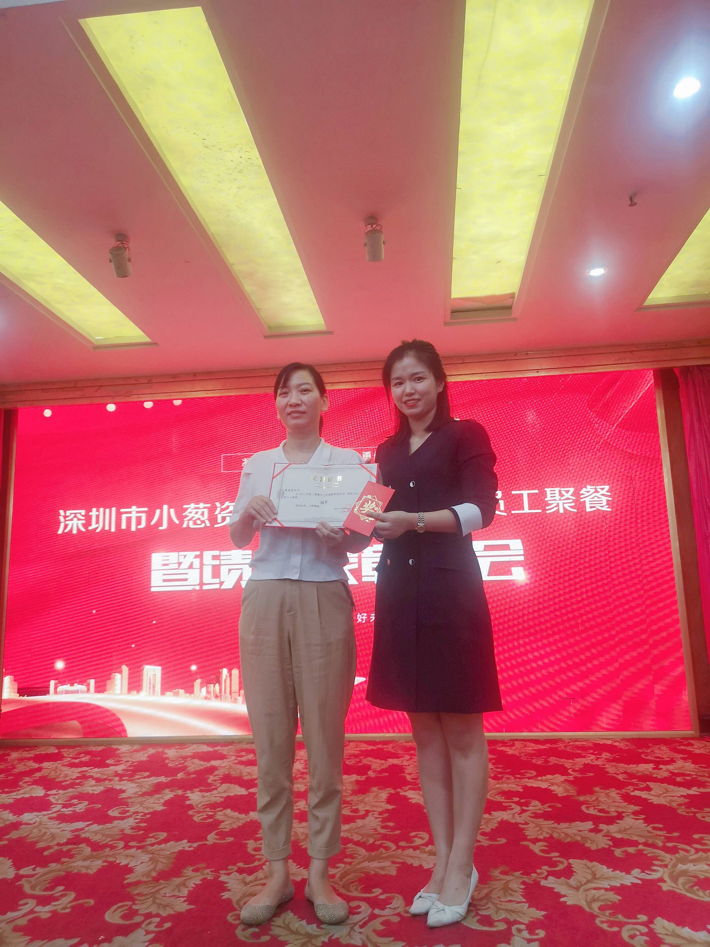 深圳分公司总经理张总、风控总经理曹总分别为团队代表及优秀员工颁发荣誉证书和现金奖励