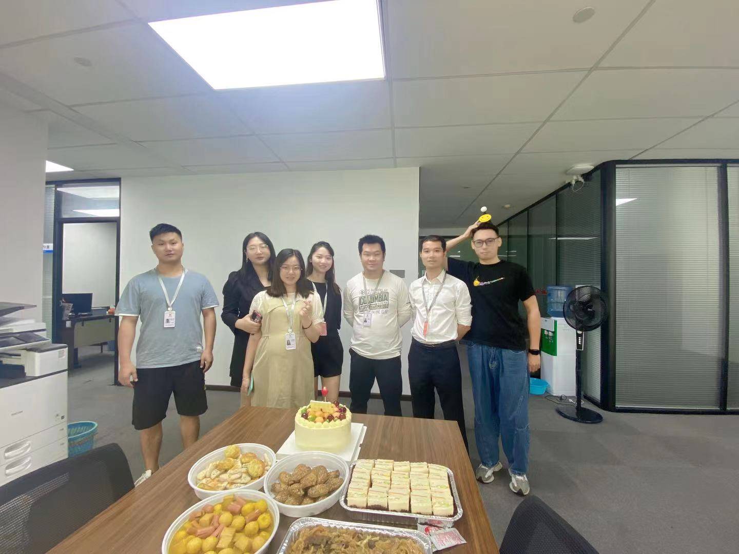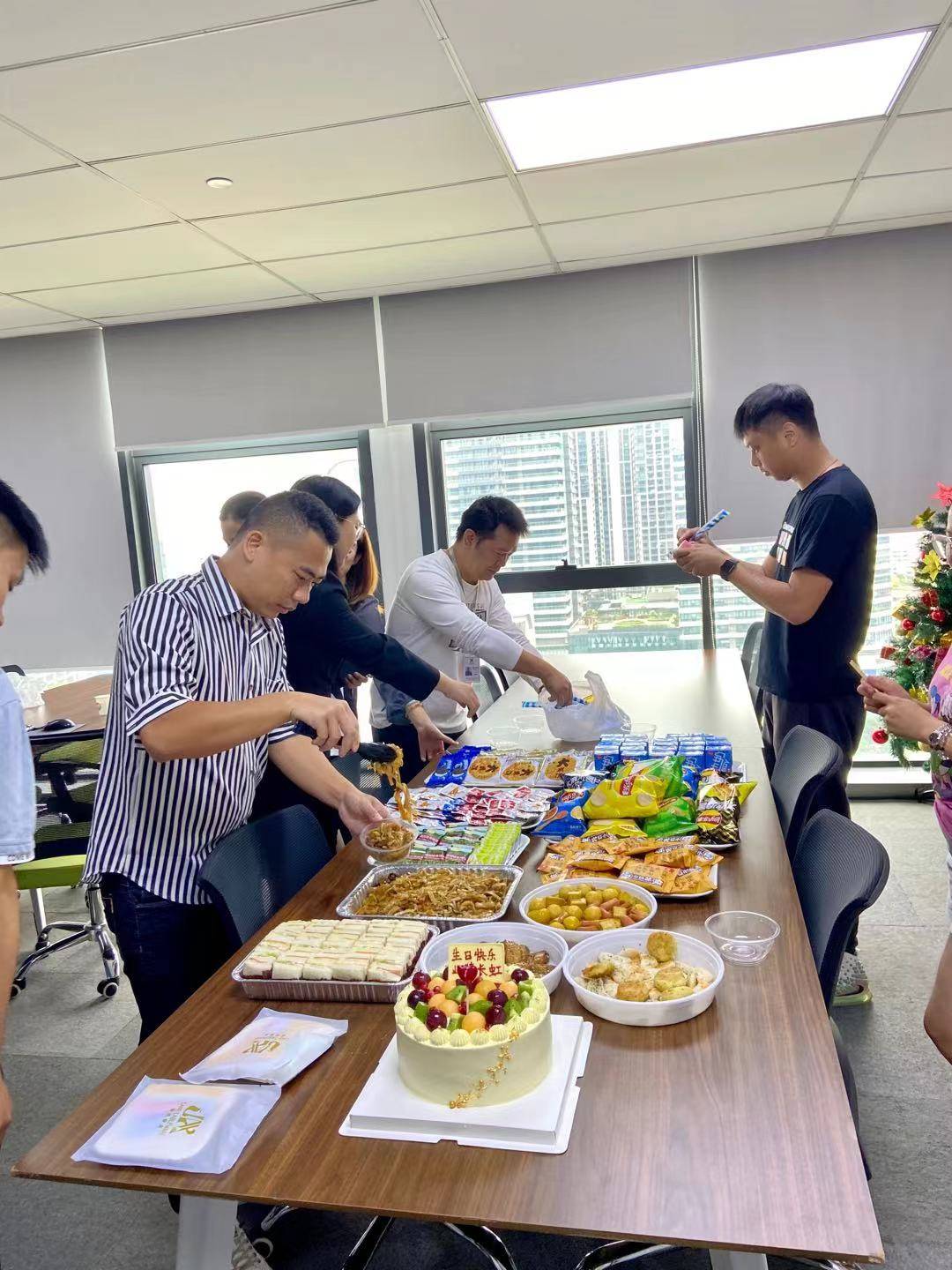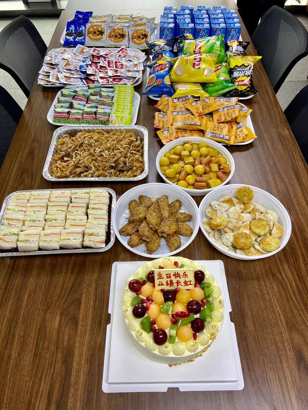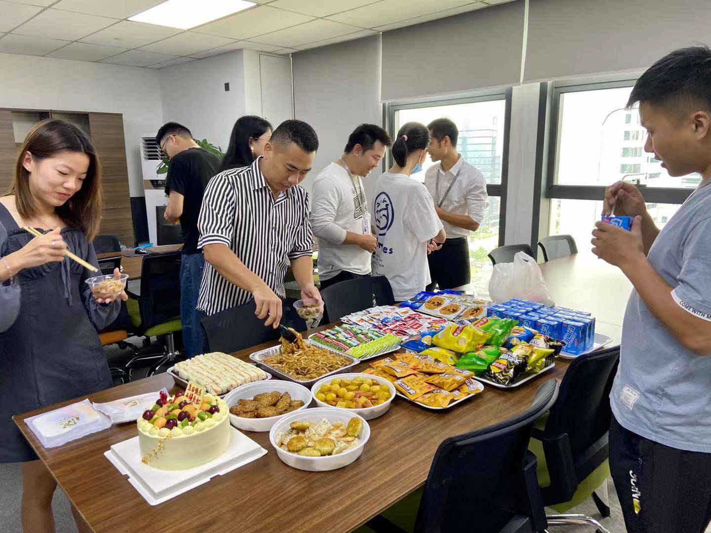 在今天,公司为员工们精心准备了生日蛋糕,美食饮品,举办了第三季度的生日会。